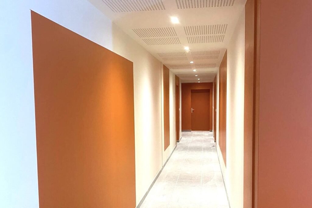 Travaux de peinture intérieure, préparation des supports et finitions de qualité. Intervention réalisée dans le respect du planning et des exigences du maître d’ouvrage.